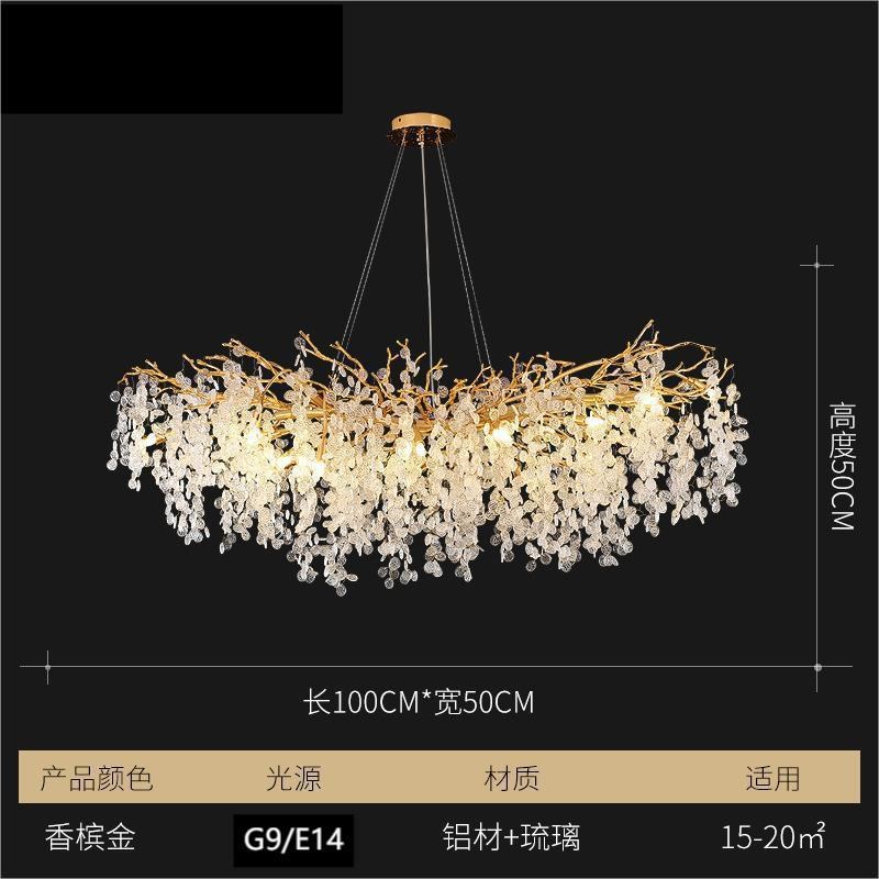新款水晶大厅灯创意简约轻奢铝材树枝金钱树水晶客厅展厅餐厅吊灯