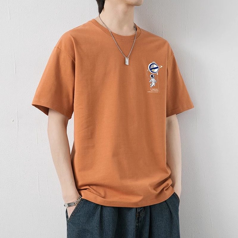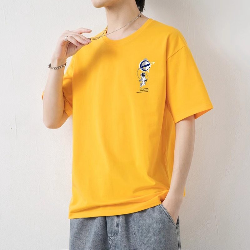 花花公子夏季太空人圆领纯棉黑色体恤衫即墨休闲宽松短袖T恤男潮