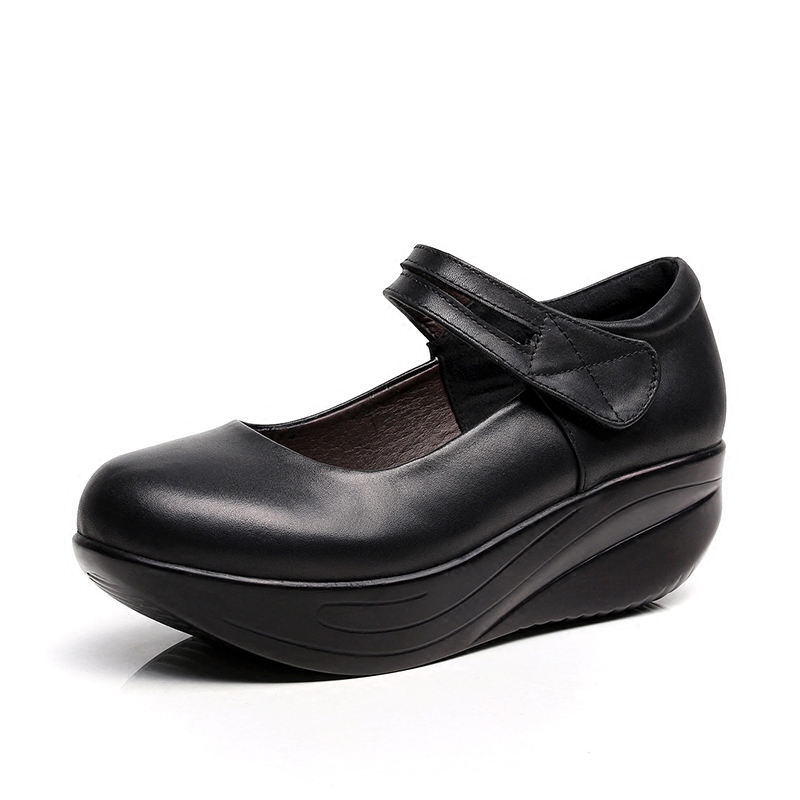 圆头浅口民族风摇摇鞋坡跟防水台女鞋厚底松糕皮鞋魔术贴舒适单鞋