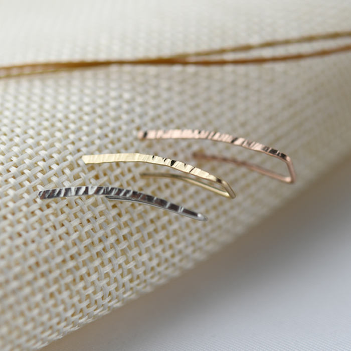 手工制作S925锤面U型耳夹个性女14K包金玫瑰金防过敏个性极简耳环