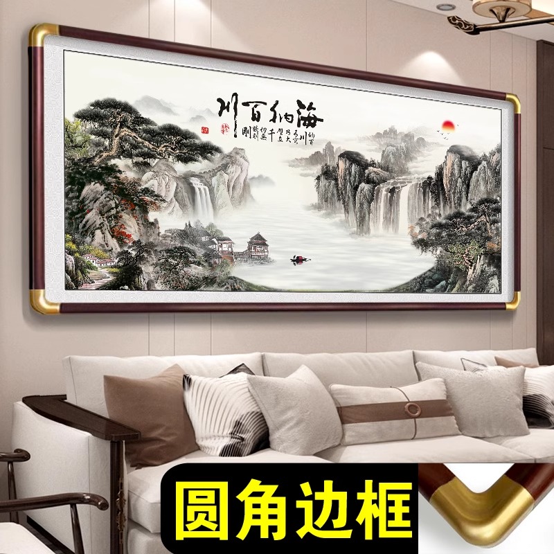 海纳百川挂画客厅办公室茶室装饰画背有靠山山水画旭日东升好寓意