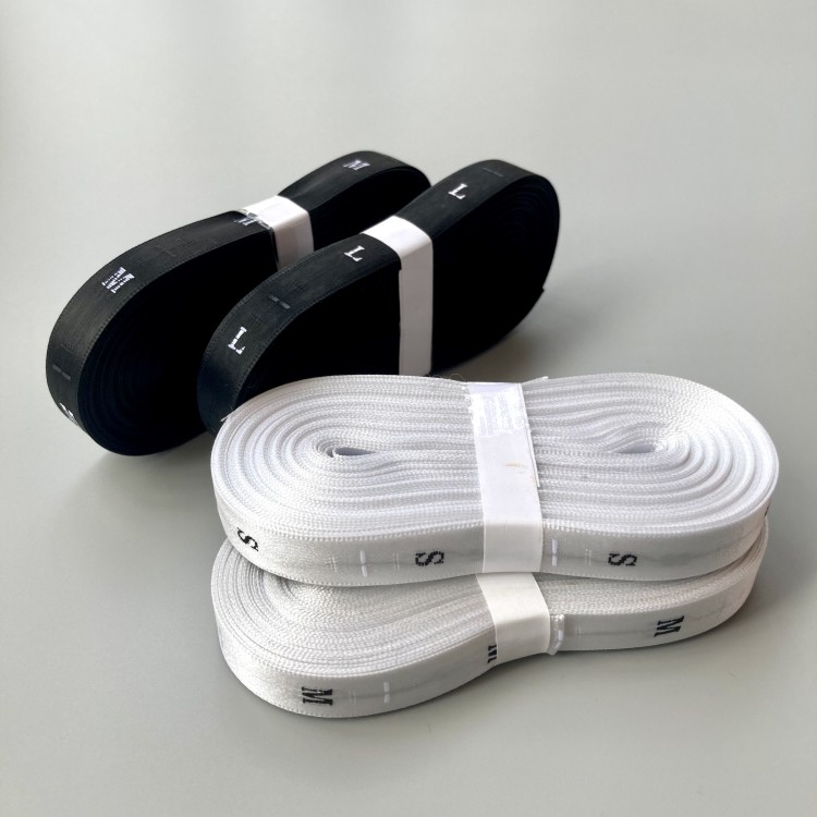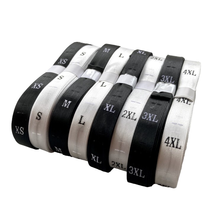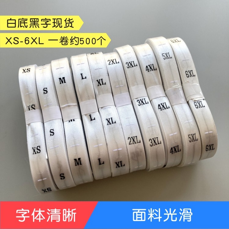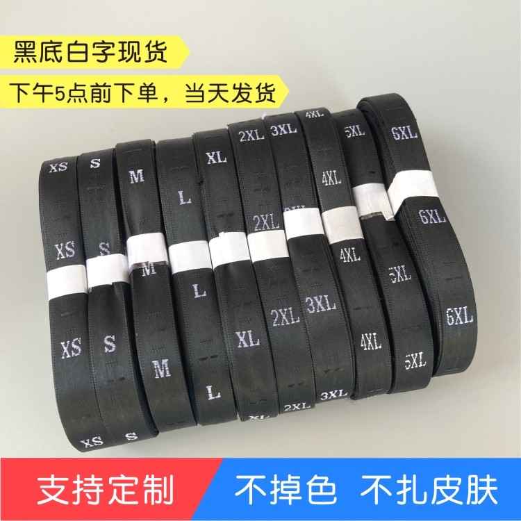 服装尺码标织唛高档木梭机缎面织边黑白色衣服英文大小号码标现货