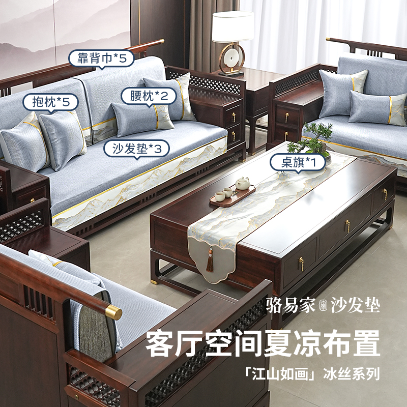 骆易家新中式夏季凉感沙发垫透气冰丝沙发盖布防滑沙发凉席垫坐垫