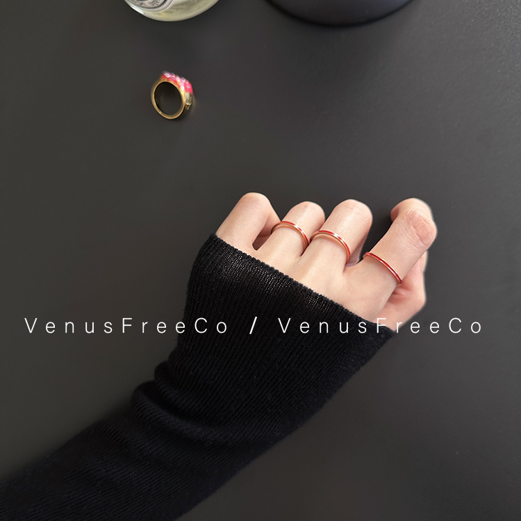 新年开运 红线设计感不褪色红色超细滴油镀金色戒指叠戴简约中式