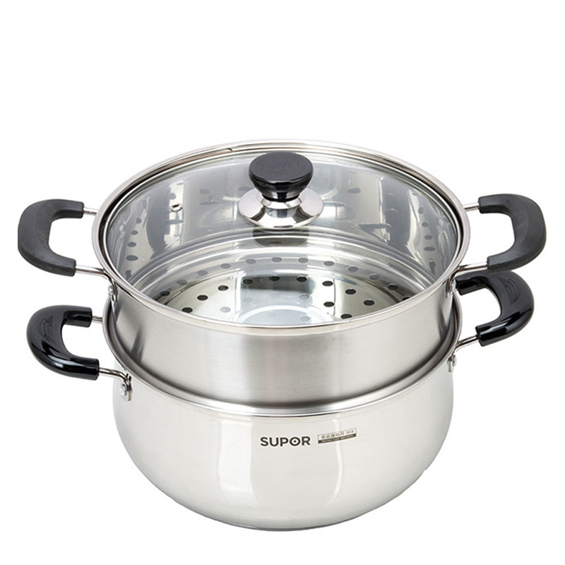 苏泊尔汤锅304不锈钢20/st22h3/24CM加厚复底带蒸笼屉家用小蒸锅