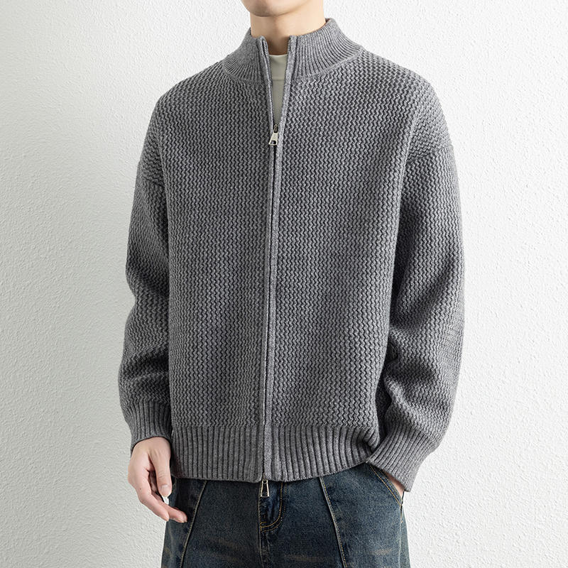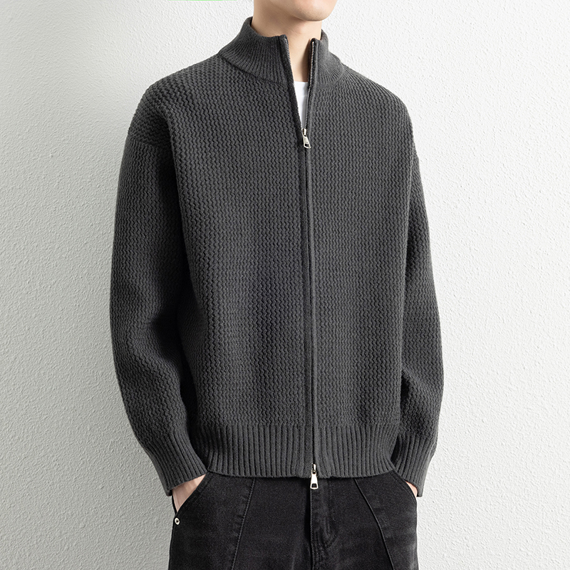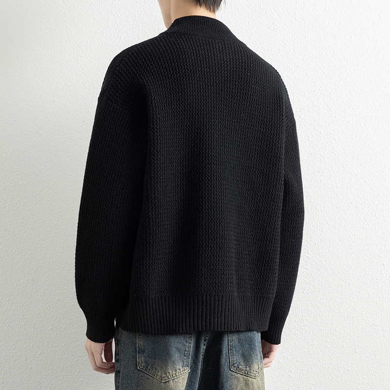 迈特优立领开衫毛衣男士秋冬季新款慵懒风纯色宽松休闲针织衫外套