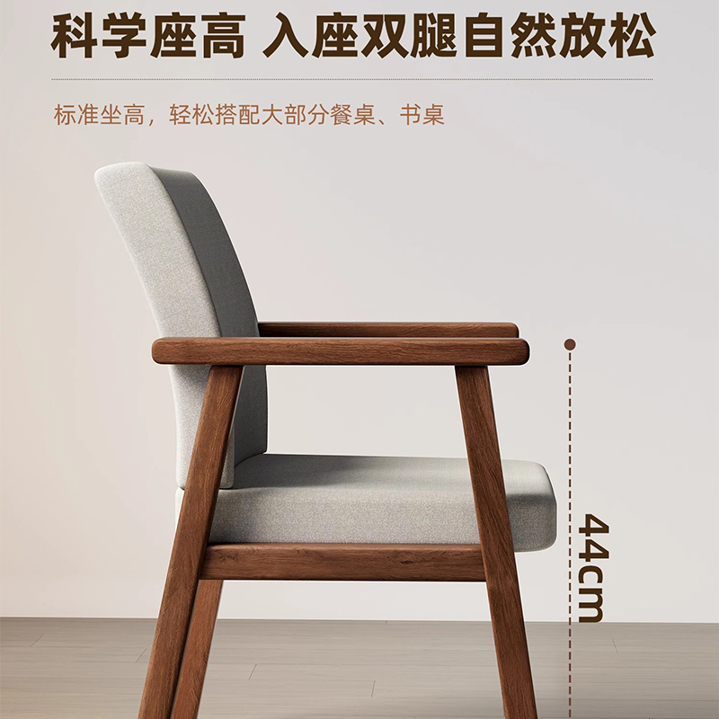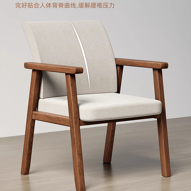 实木餐椅家用软包椅子靠背扶手椅轻奢简约现代胡桃客厅餐厅书桌椅