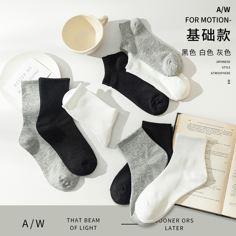 袜子男秋季中筒袜夏季男生运动长袜秋冬男士短袜纯色诸暨袜子女
