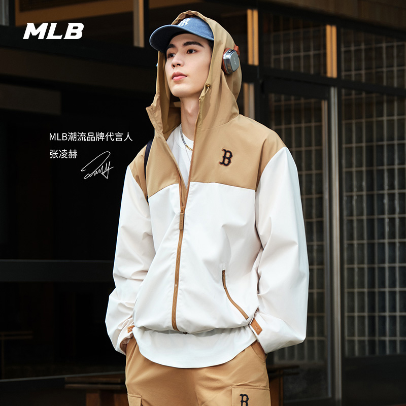 MLB官方张凌赫明星同款情侣拼接经典拉链夹克外套春夏WJB03