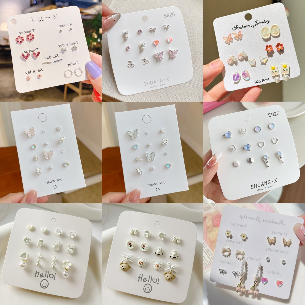 2025爆款日韩S925纯银针养耳洞耳钉气质女珍珠爱心耳环耳饰套装