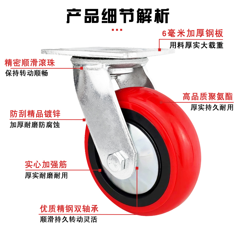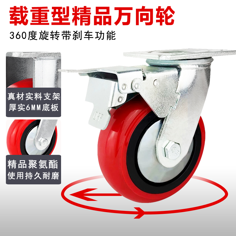 重型5寸脚轮8寸塑芯PU聚氨酯6寸万向轮圆弧4寸省力轮耐磨载重脚轮