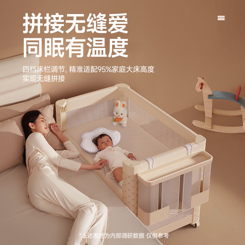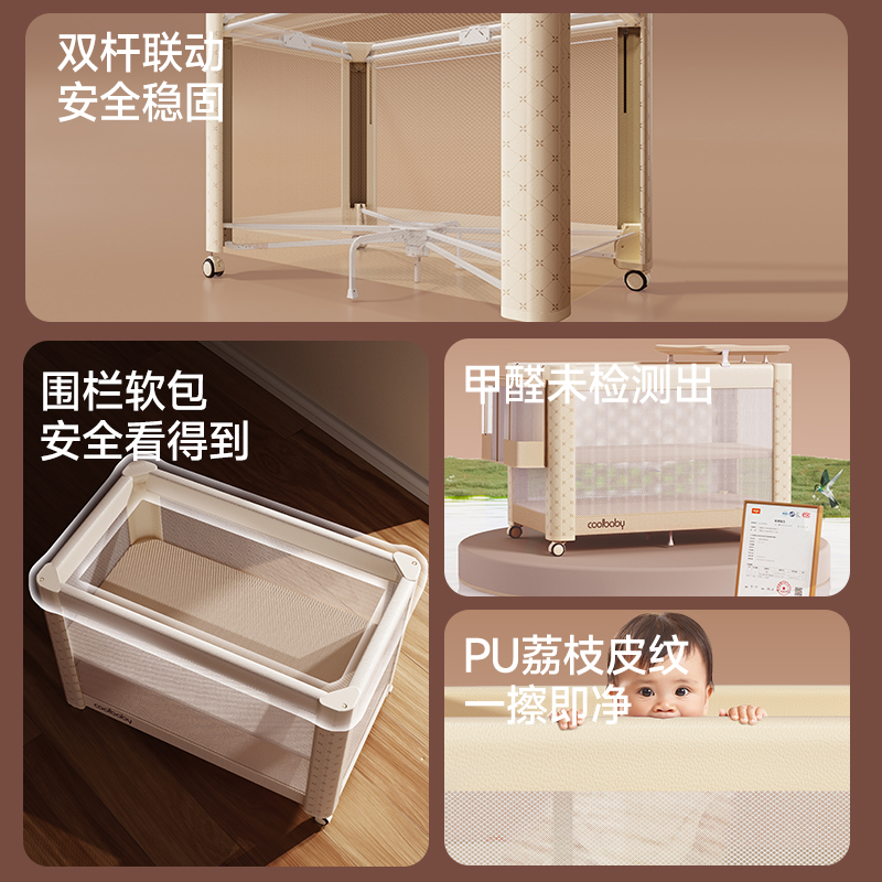 coolbaby婴儿床软包围栏升降无缝拼接床一键开合便携可移动宝宝床