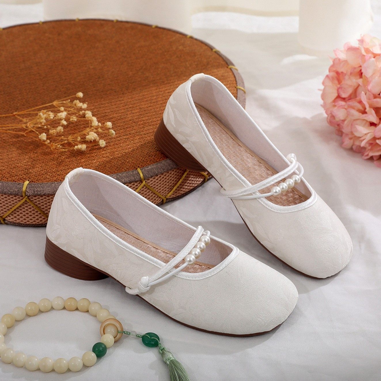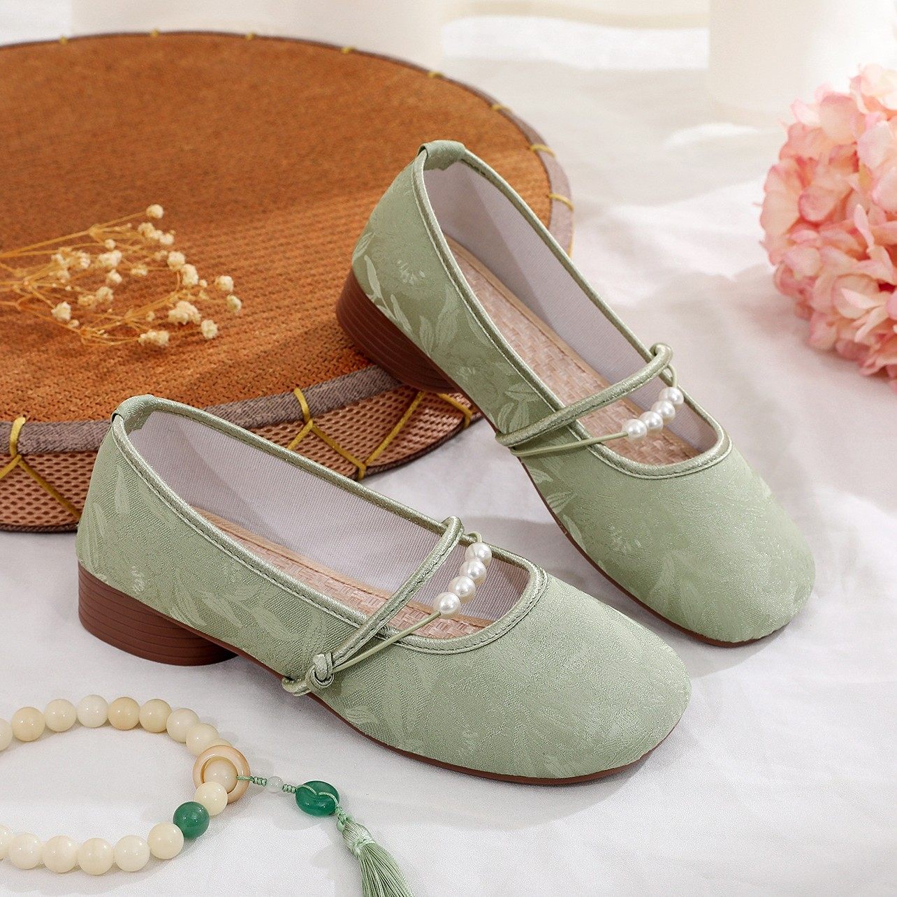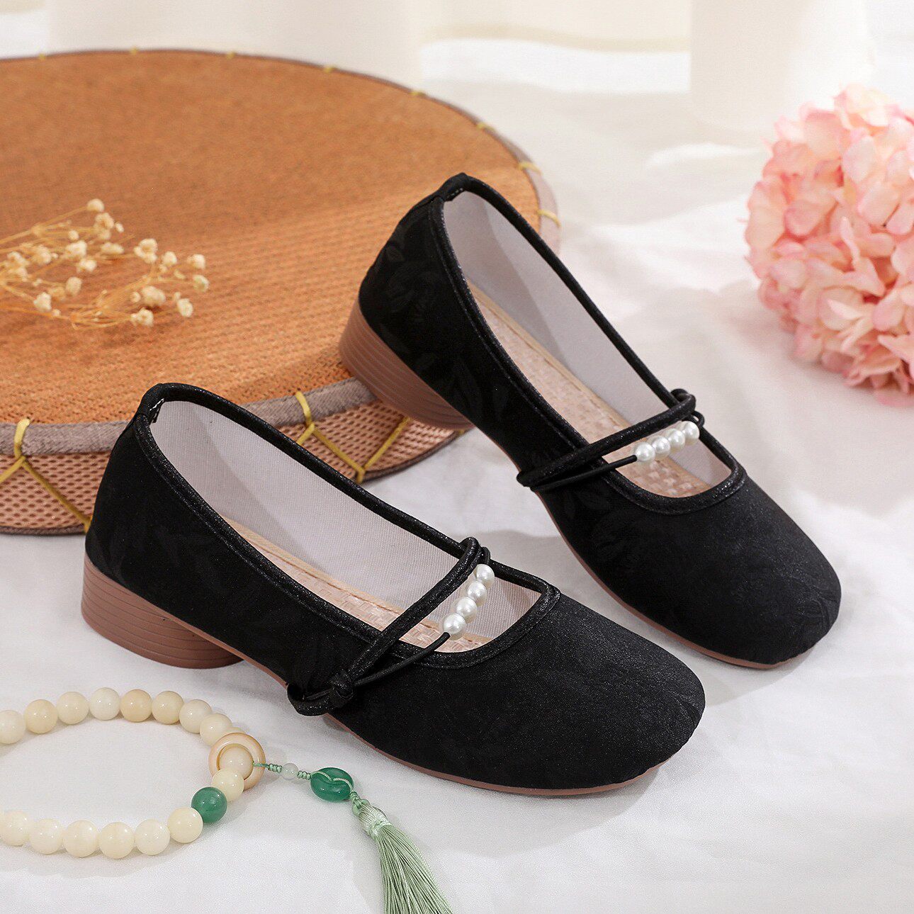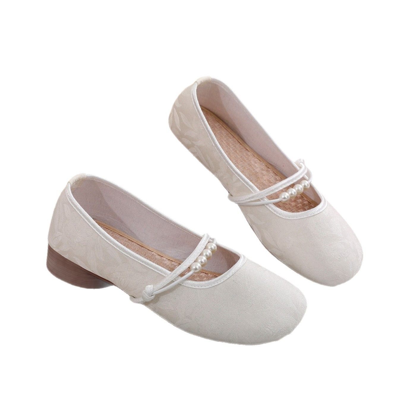 中式国风低跟汉服鞋子浅口粗跟配旗袍老北京布鞋女法式玛丽珍单鞋