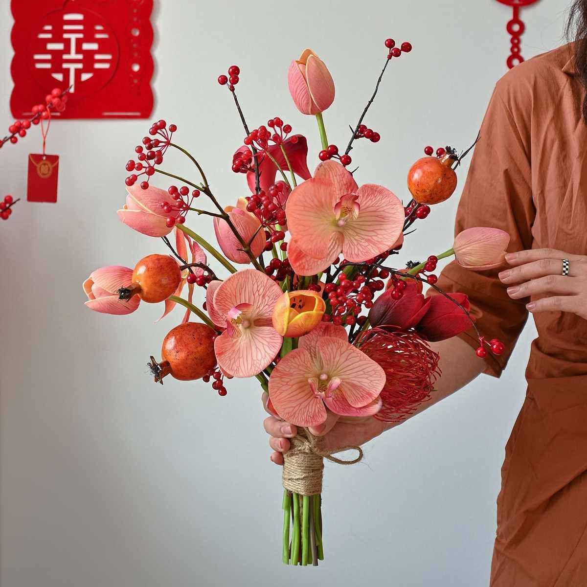 【包邮】年宵花春节喜庆仿真花婚庆花束绢花客厅插花餐桌家居装饰