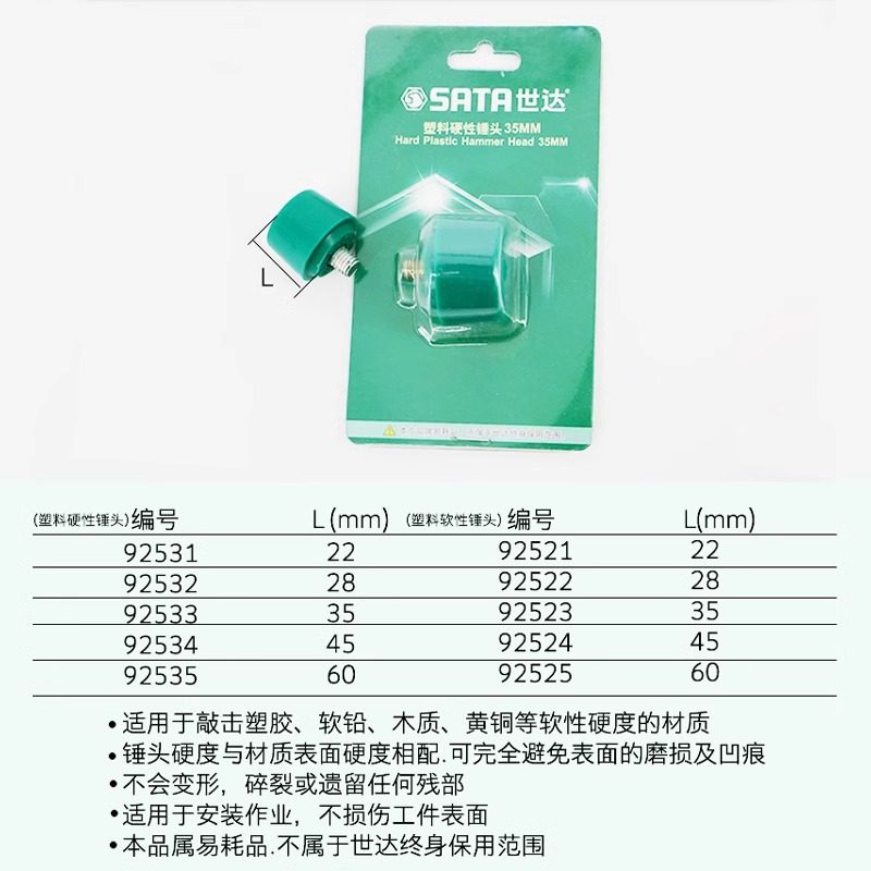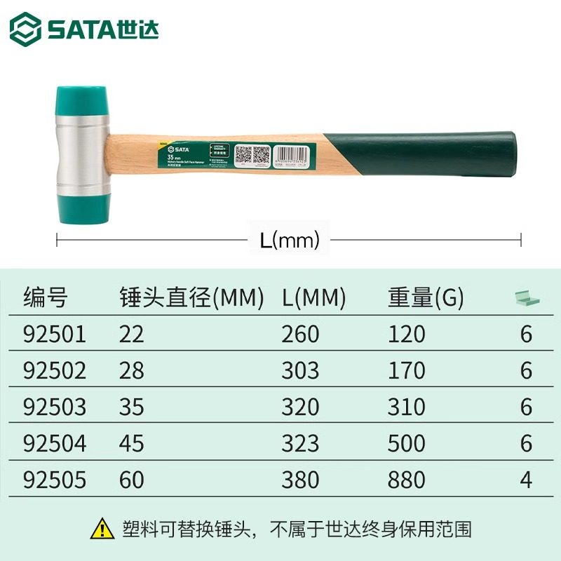 世达安装锤木柄橡胶榔头可换头塑料锤子软性硬性替换锤头安装工具