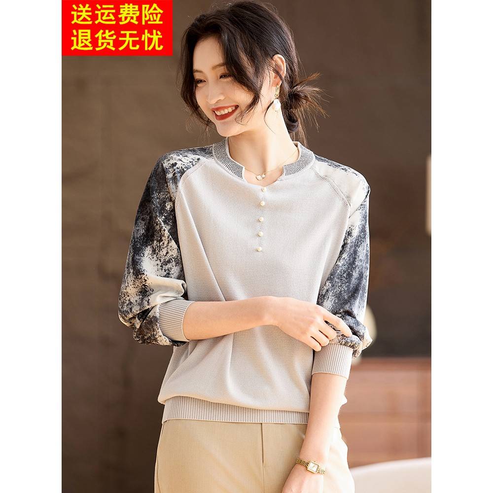 喜卉妈妈秋装纱袖针织上衣服洋气减龄中老年女装夏季薄款打底小衫