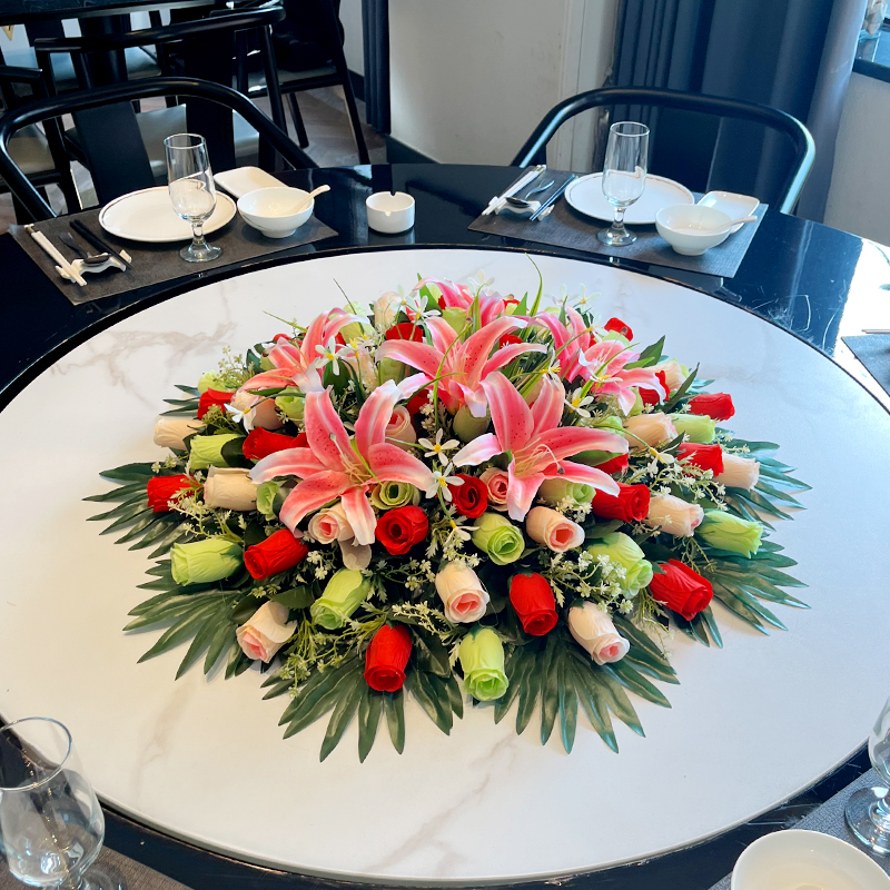 酒店餐桌上的假花摆花装饰摆件仿真花大圆桌花餐厅饭店转盘中间花
