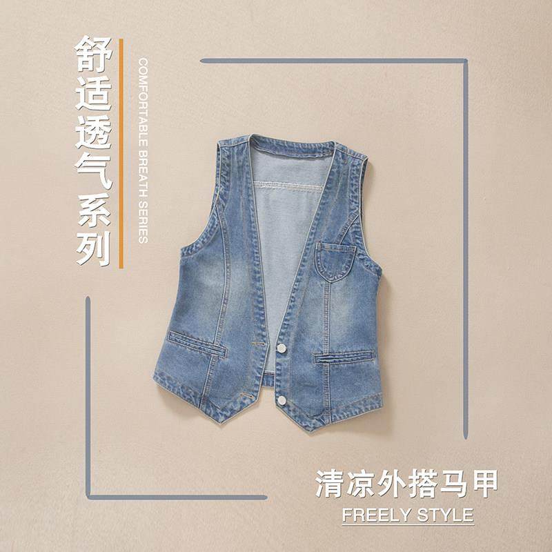 韩国牛仔马甲女士春秋新款外搭薄款马夹小背心时尚坎肩短款外穿潮
