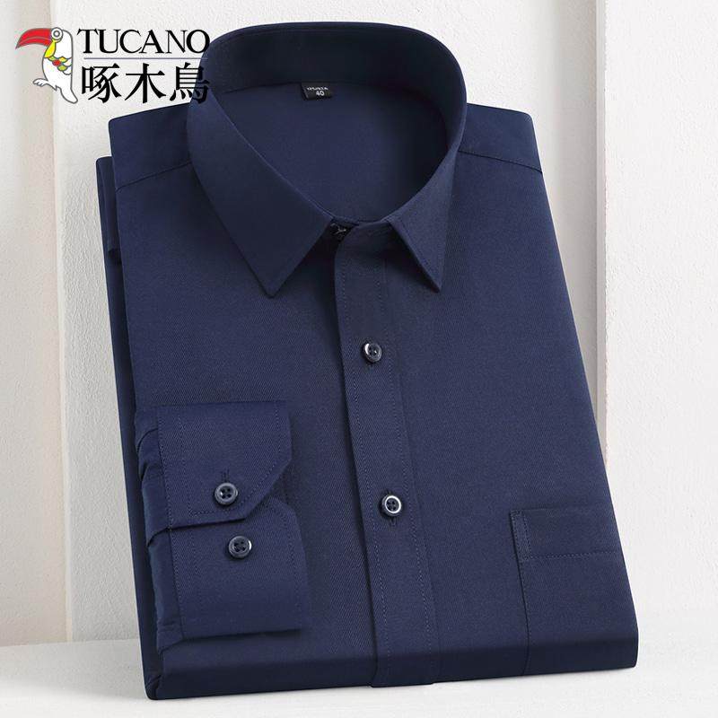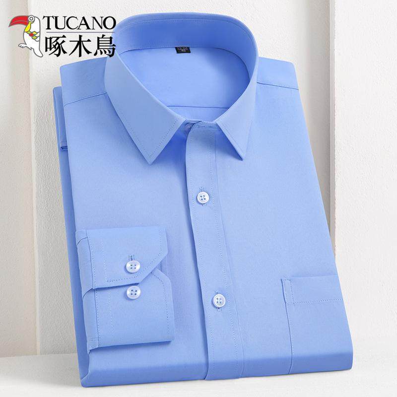 啄木鸟立领衬衫男长袖修身商务休闲职业工装白衬衣男打底衫工作