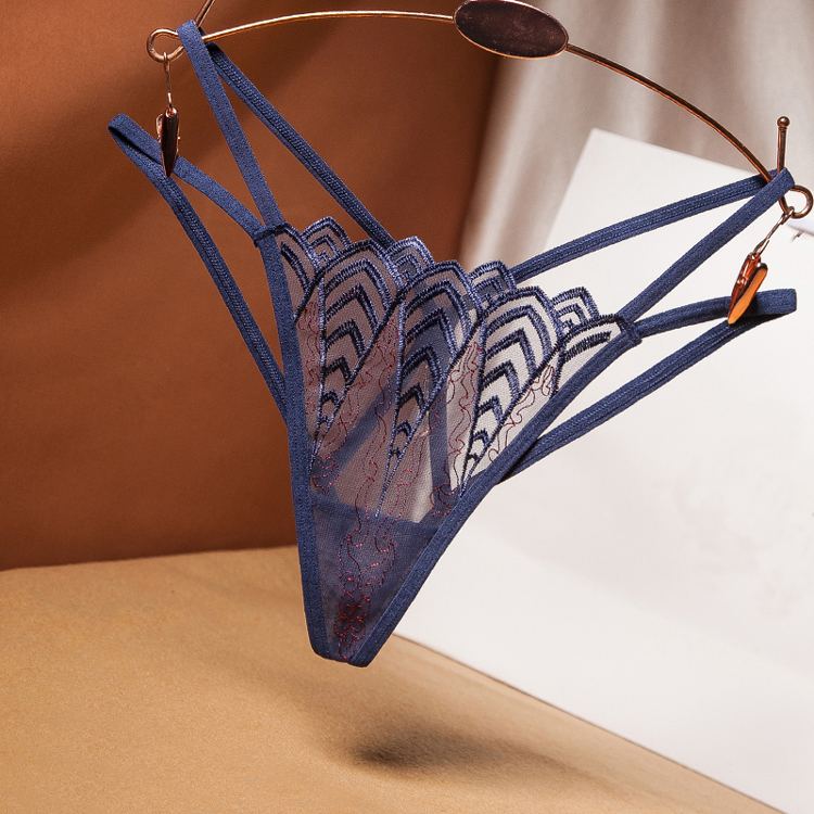 欧美轻奢迷人性感内裤女低腰网纱刺绣蕾丝丁字裤透明女士T裤日系