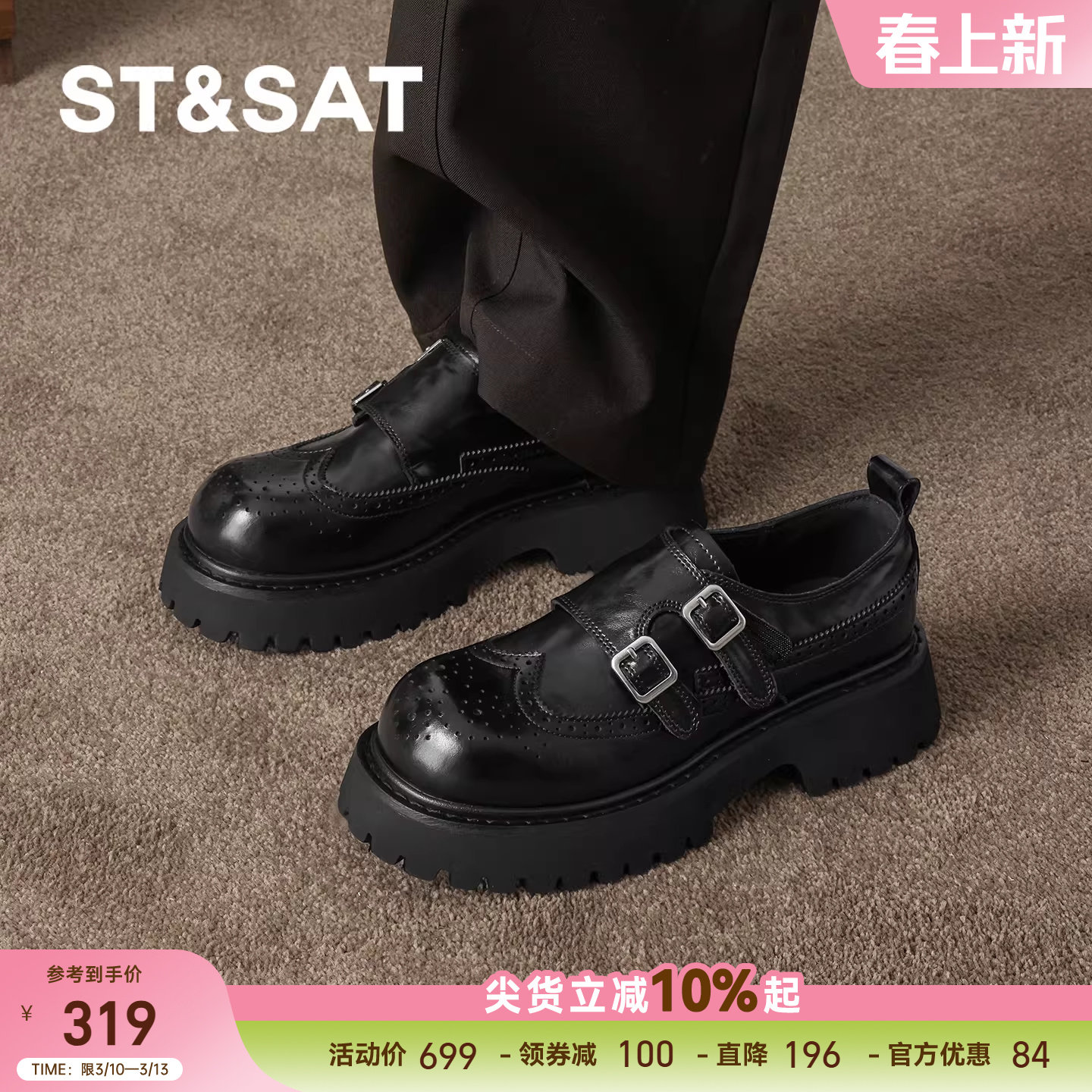 星期六乐福鞋女2026新款春季时尚女鞋休闲皮鞋厚底舒适双扣带单鞋