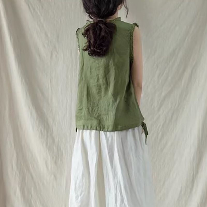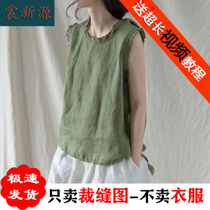 AX108复古亚麻木耳边无袖背心纸样女装打底上衣裁剪衣服