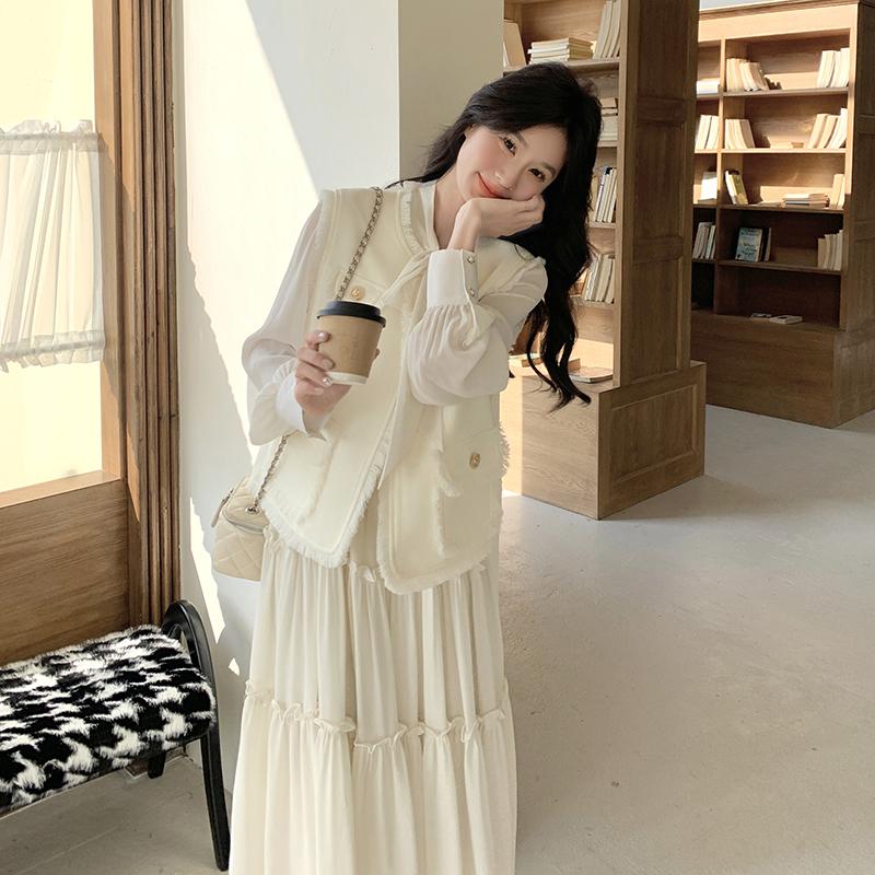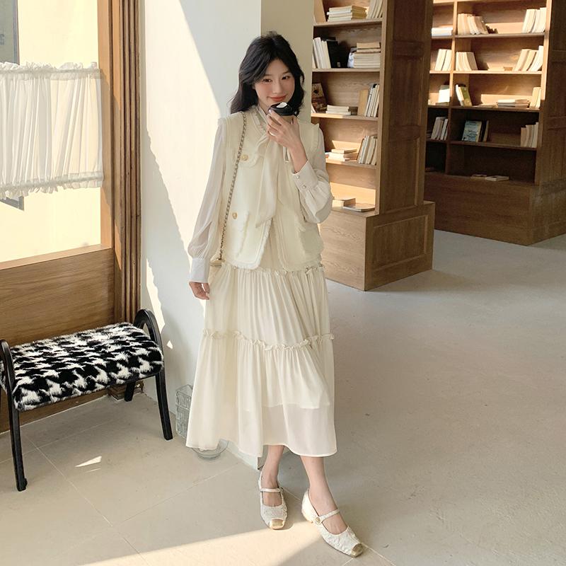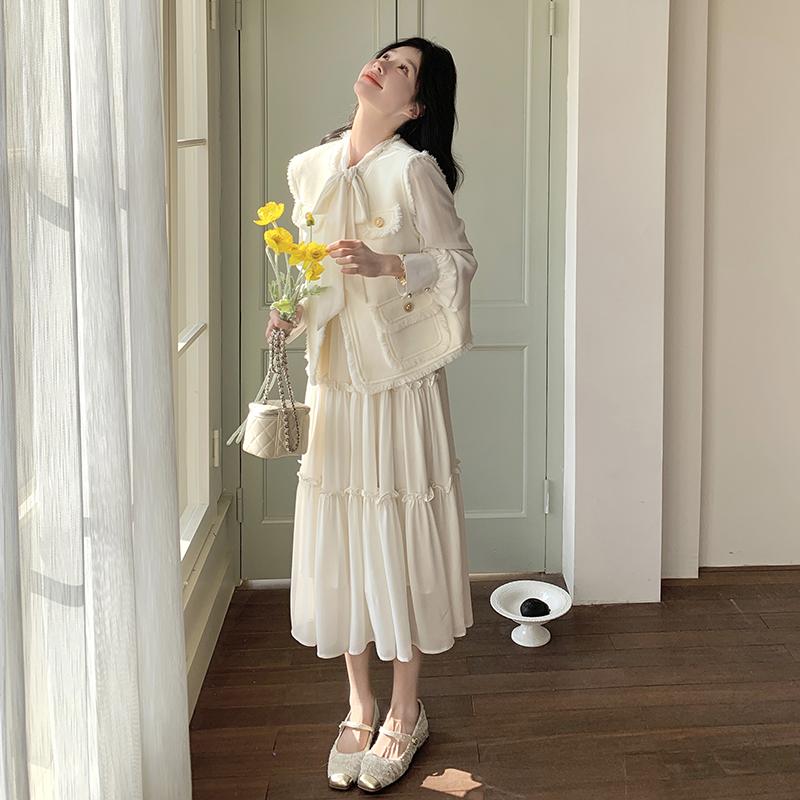 法式气质连衣裙女春秋2025新款高级感绝美漂亮一整套马甲裙子穿搭