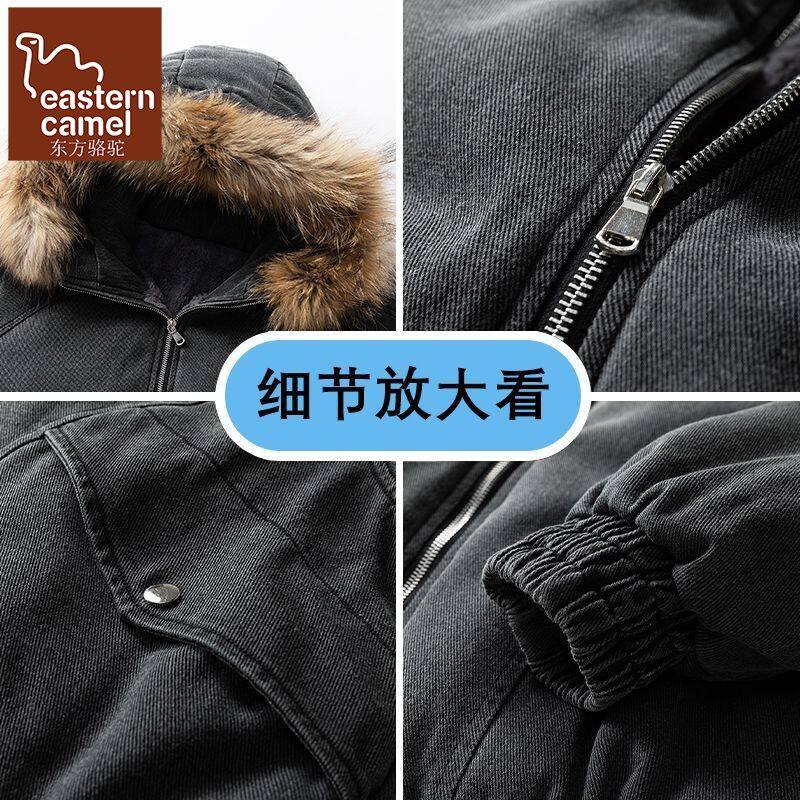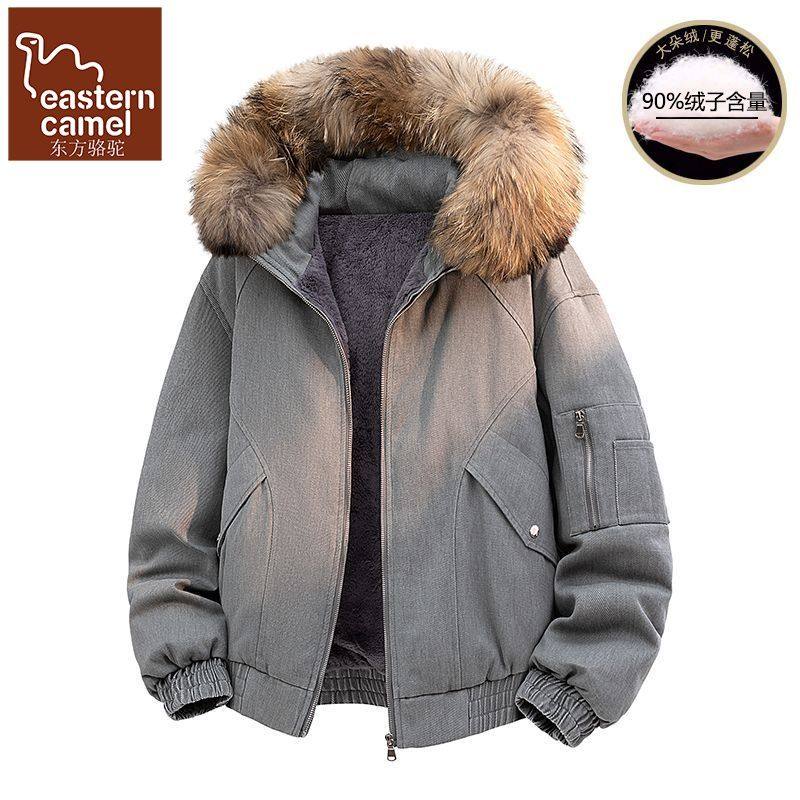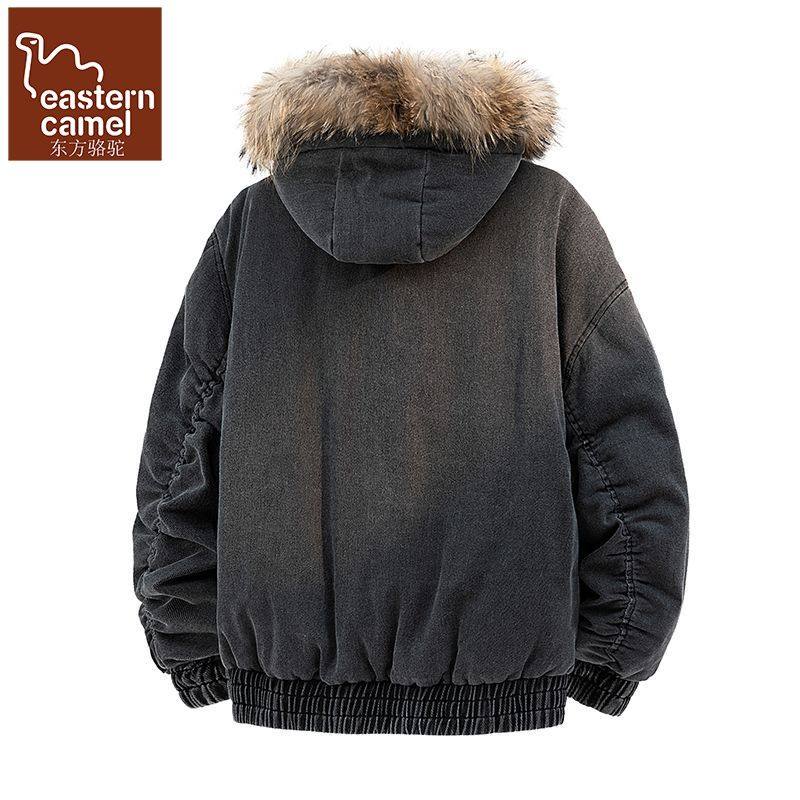 座山雕加绒加厚羽绒服男款美式复古毛领外套重磅帆布水洗工装夹克