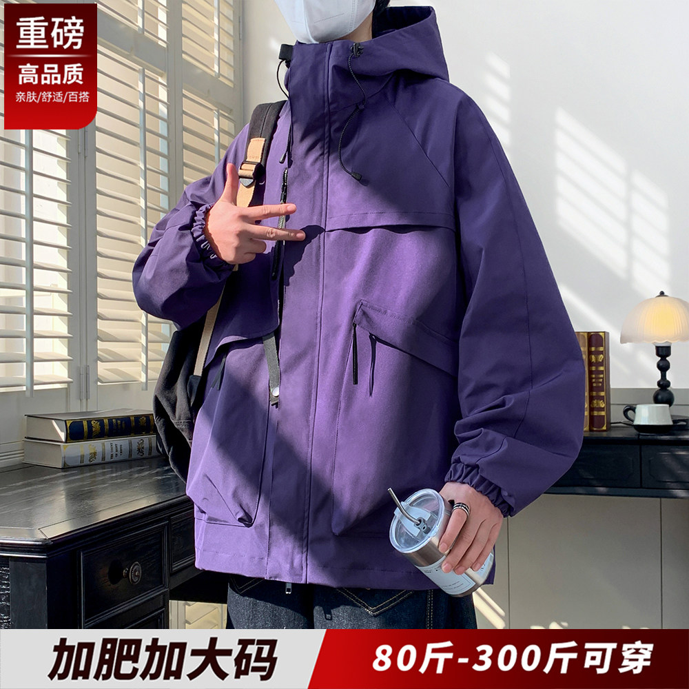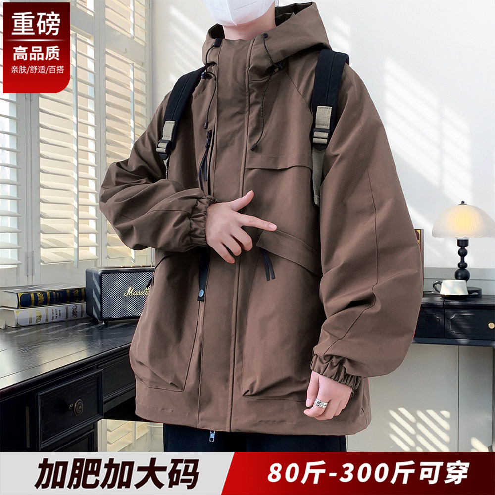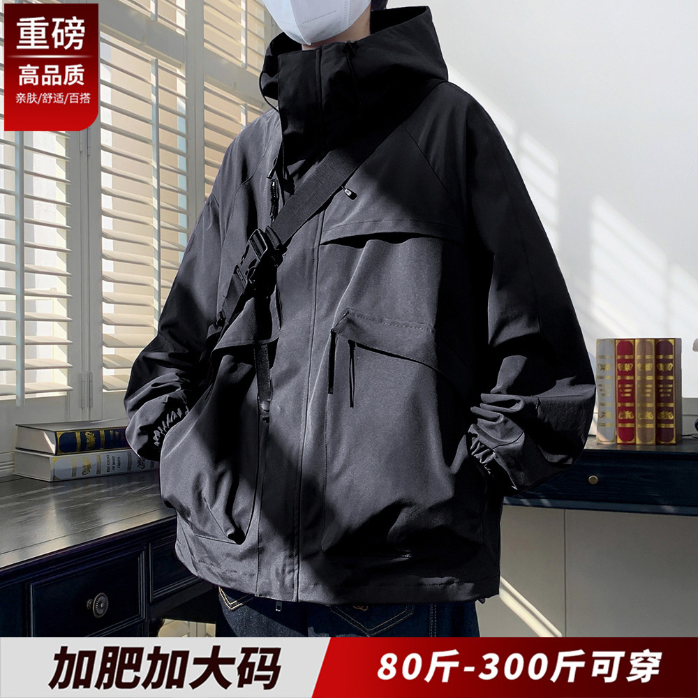 特大码连帽冲锋衣男生衣服外套工装夹克青少年胖子加肥加大300斤