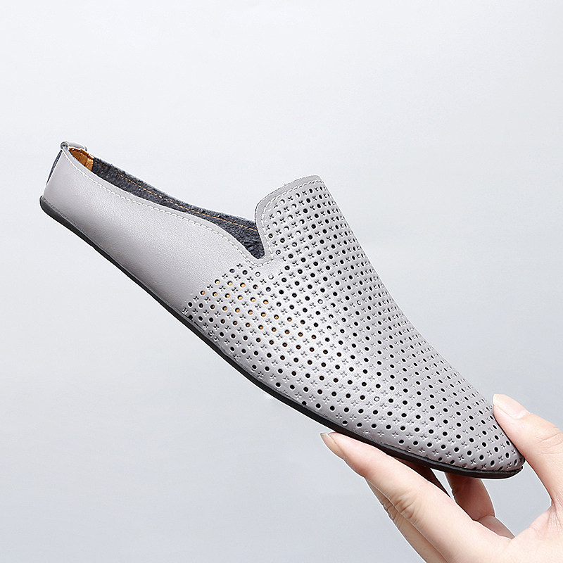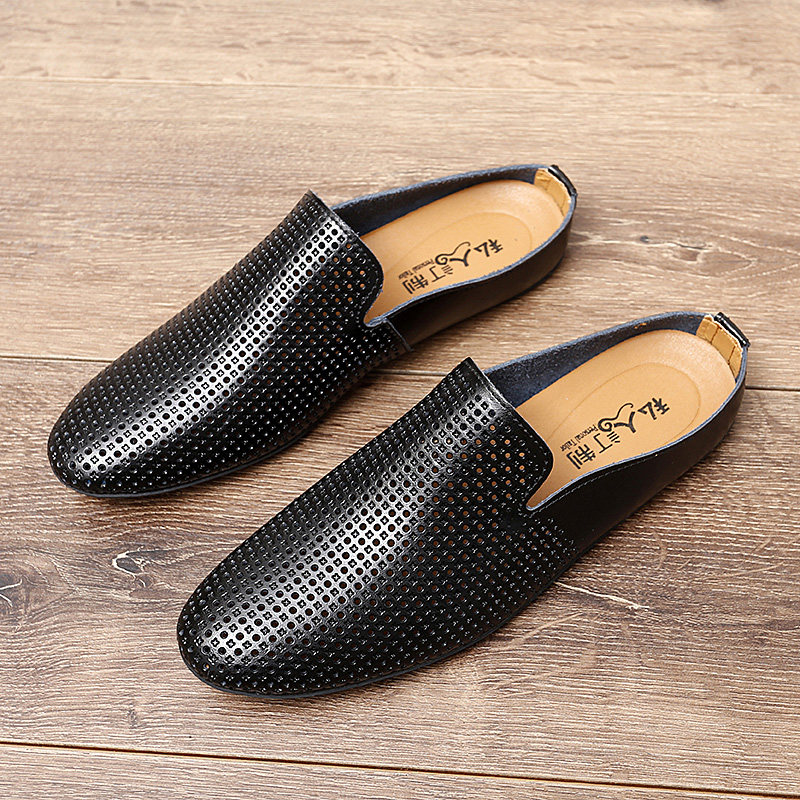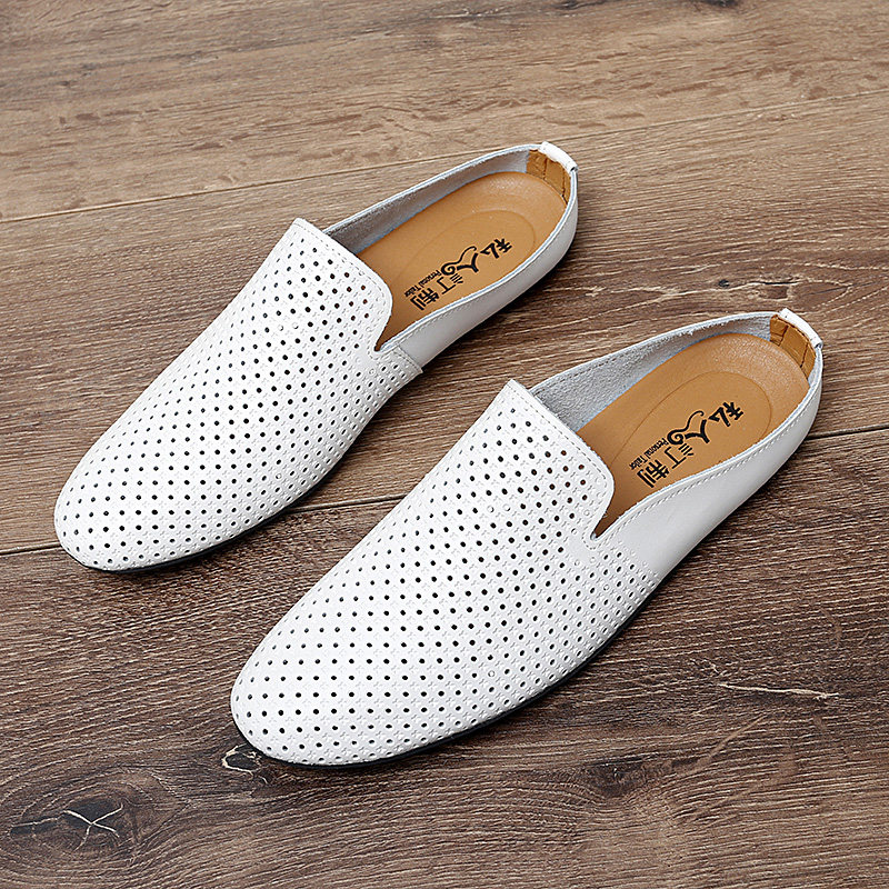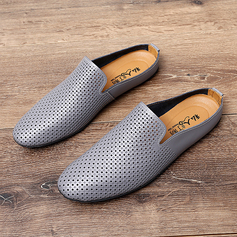 半拖一脚蹬豆豆鞋男真皮软底