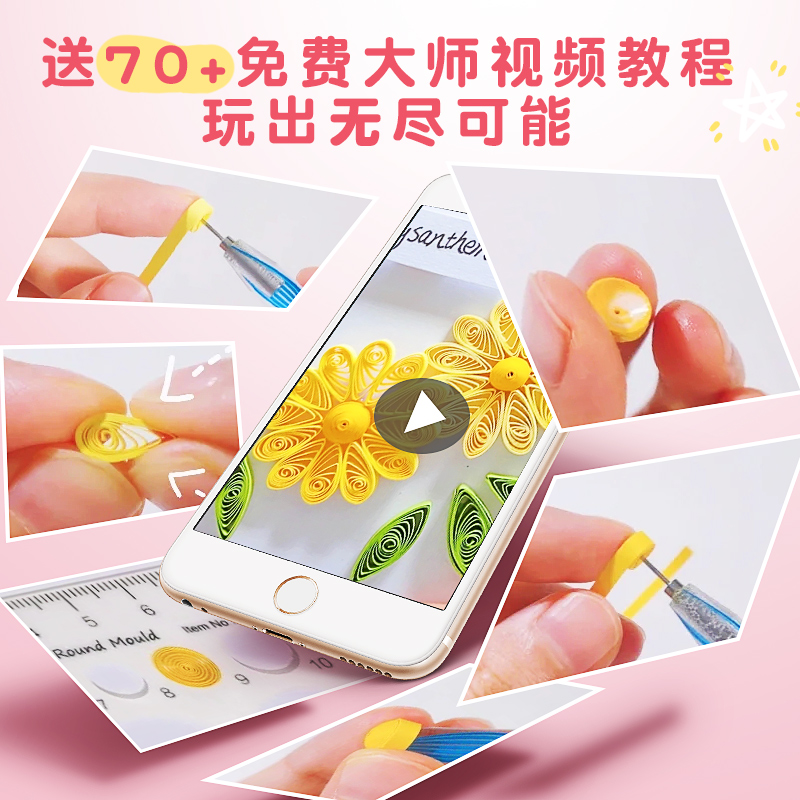 衍纸套装手工DIY材料包衍纸画套装工具包幼儿园初学者小学生衍纸相框模板书签纸条作品耳环线稿图颜彩包全套