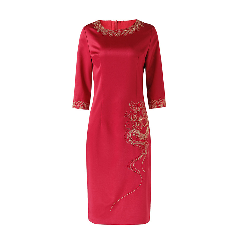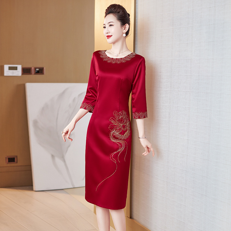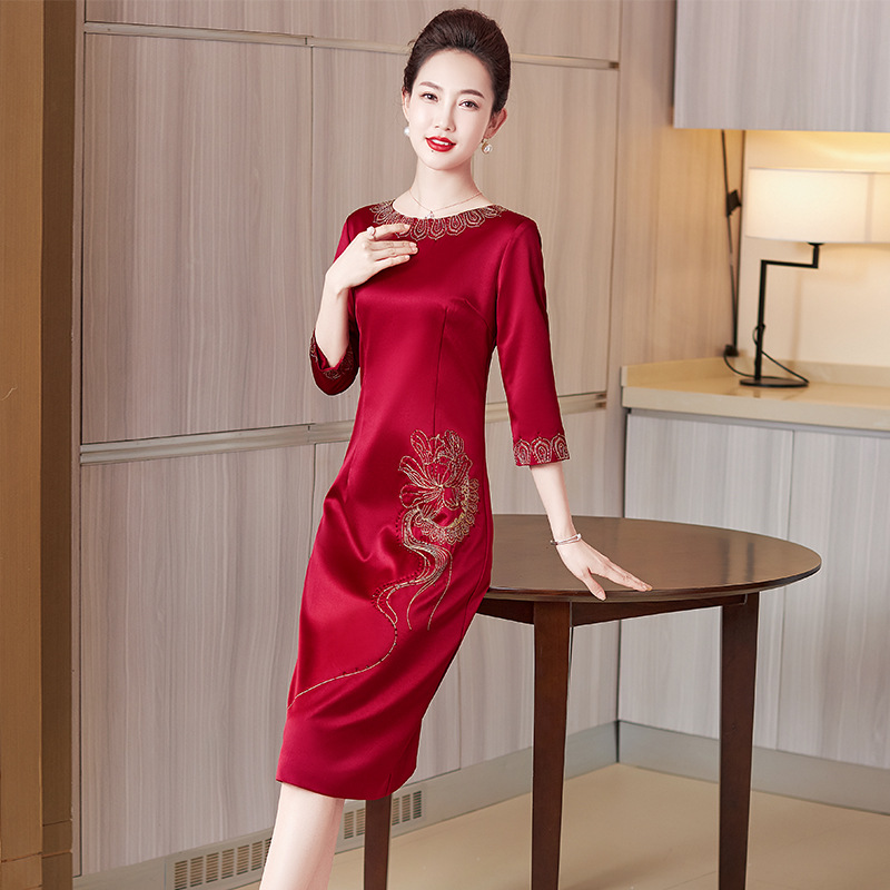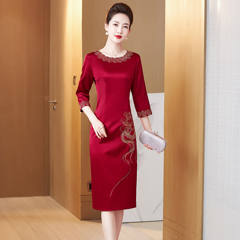 2022年春秋妈妈装圆领绣花端庄大气喜婆婆婚宴改良旗袍礼服