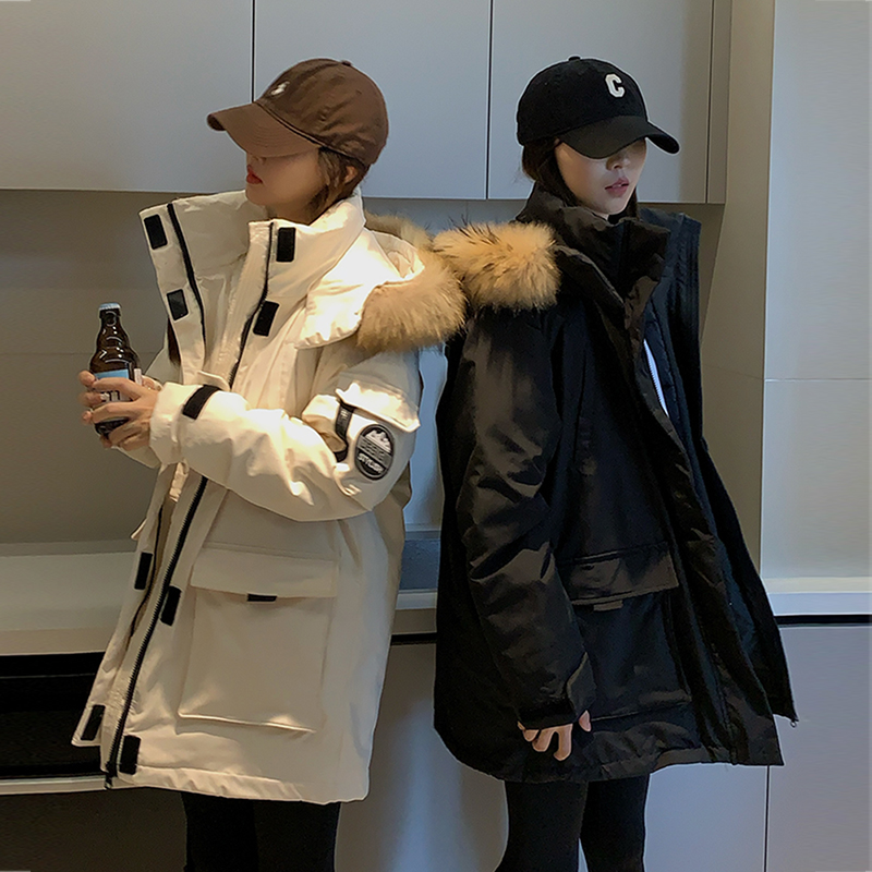 实拍情侣派克服工装羽绒棉服2024新款中长款宽松加厚设计感外套潮
