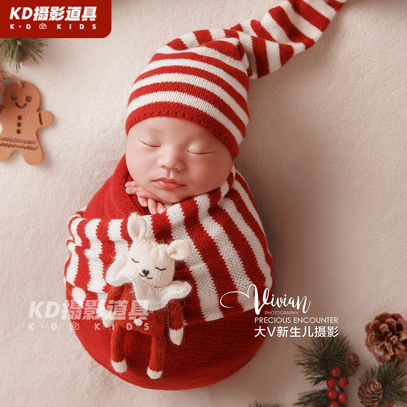 新生儿摄影道具圣诞影楼拍照主题月子照宝宝婴儿照相衣服2025年新