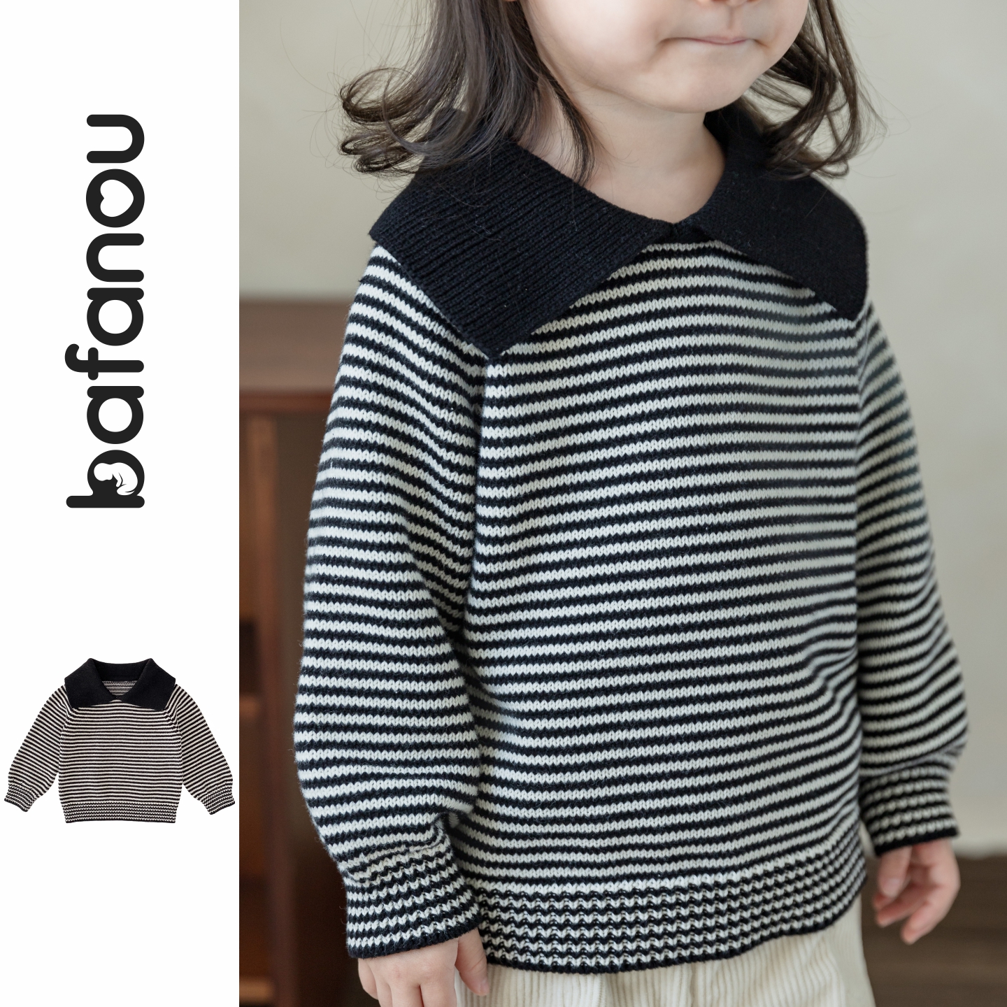 巴梵欧小月龄宝宝针织衫套头polo衫条纹婴儿毛衣秋装线衣外出服
