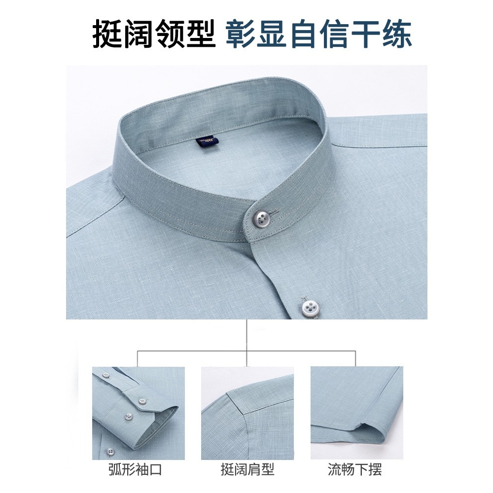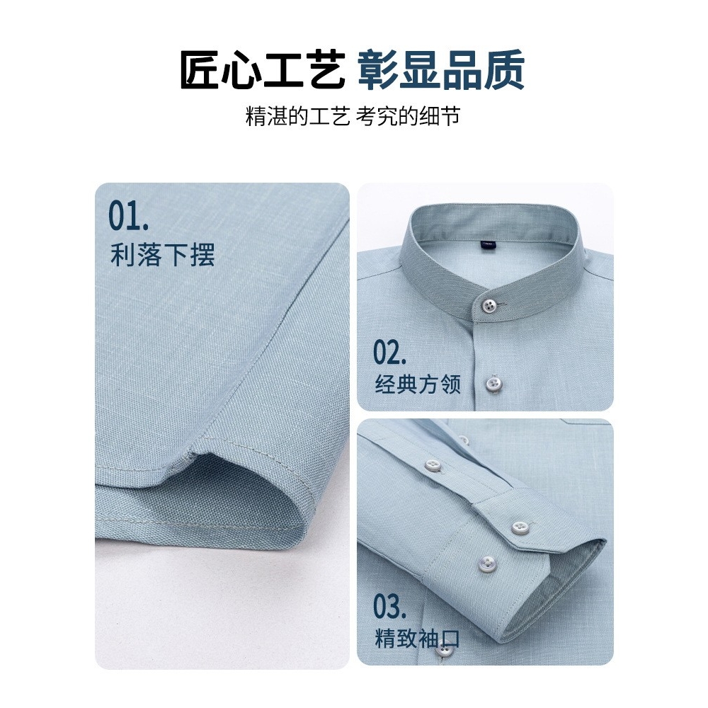 新款立领亚麻衬衫男口袋纯色长袖休闲男士衬衫轻商务衬衣男装AA01