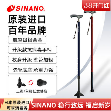 日本进口SINANO老人拐杖防滑超轻拐棍户外登山杖伸缩户外加粗手杖