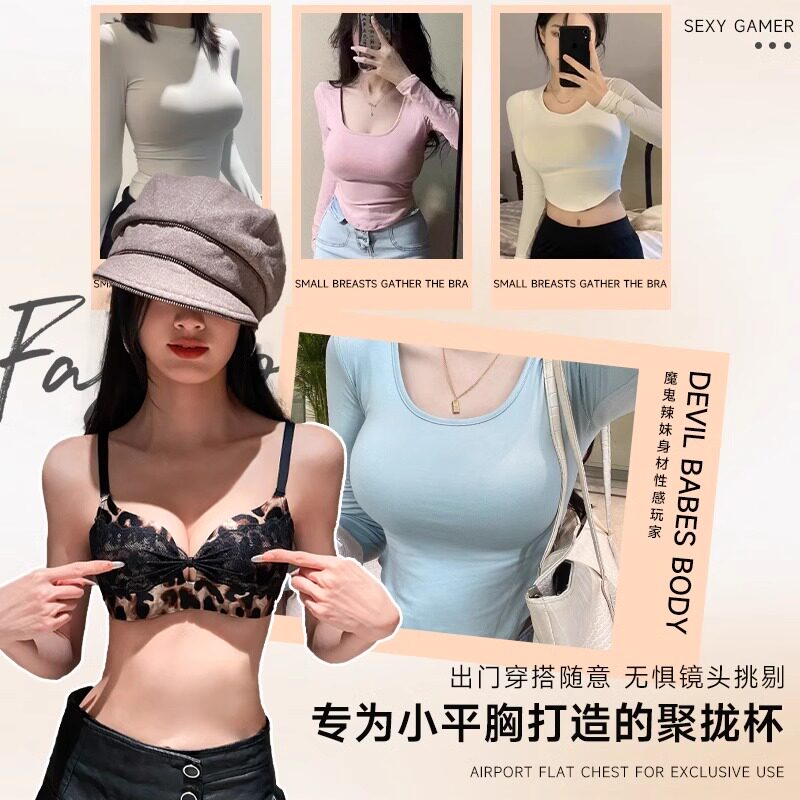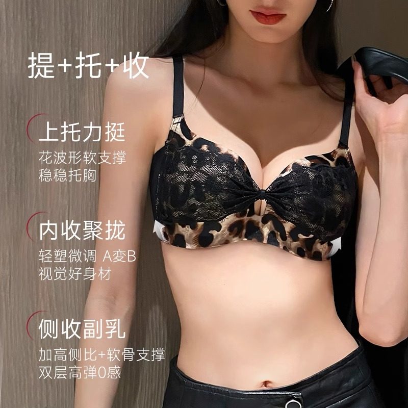 小胸聚拢显大无痕内衣女无钢圈豹纹性感收副乳防下垂文胸罩纯欲风