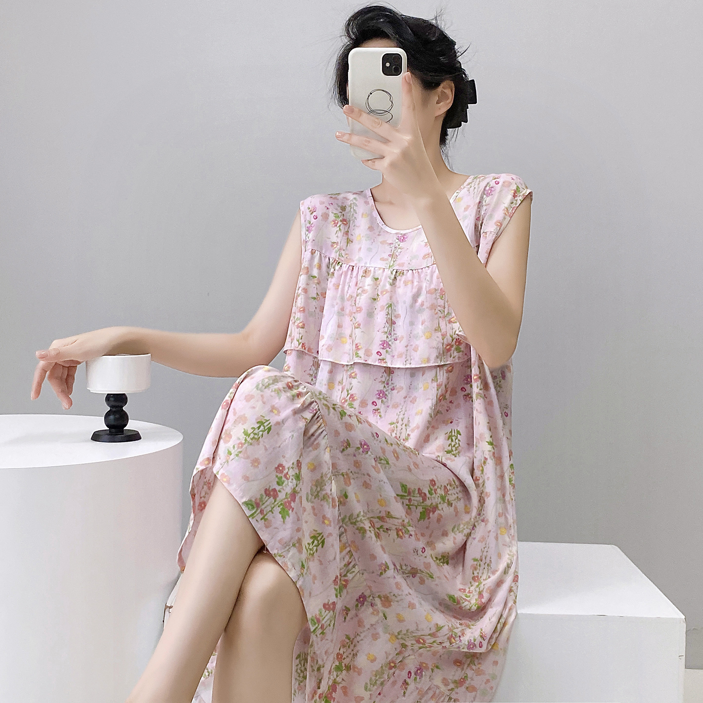 夏季无袖防凸点棉绸睡裙薄款睡衣