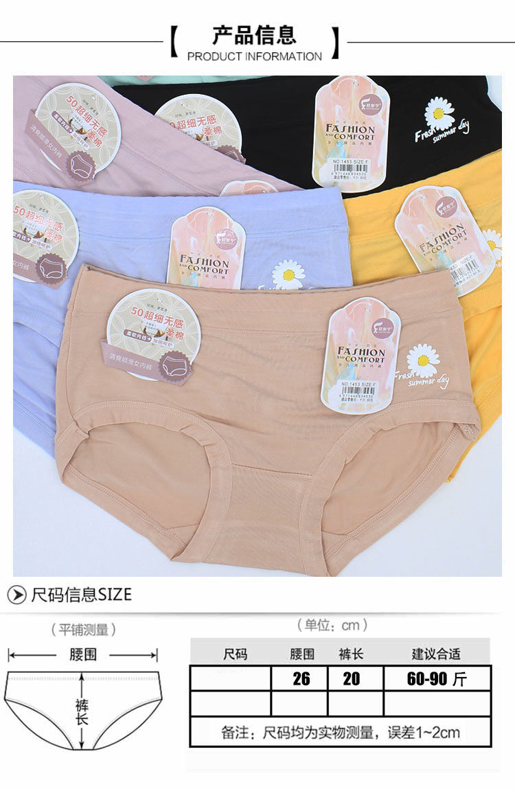 莫代尔女士内裤可爱中腰透气柔软竹纤维少女学生三角短裤 欣彤宁