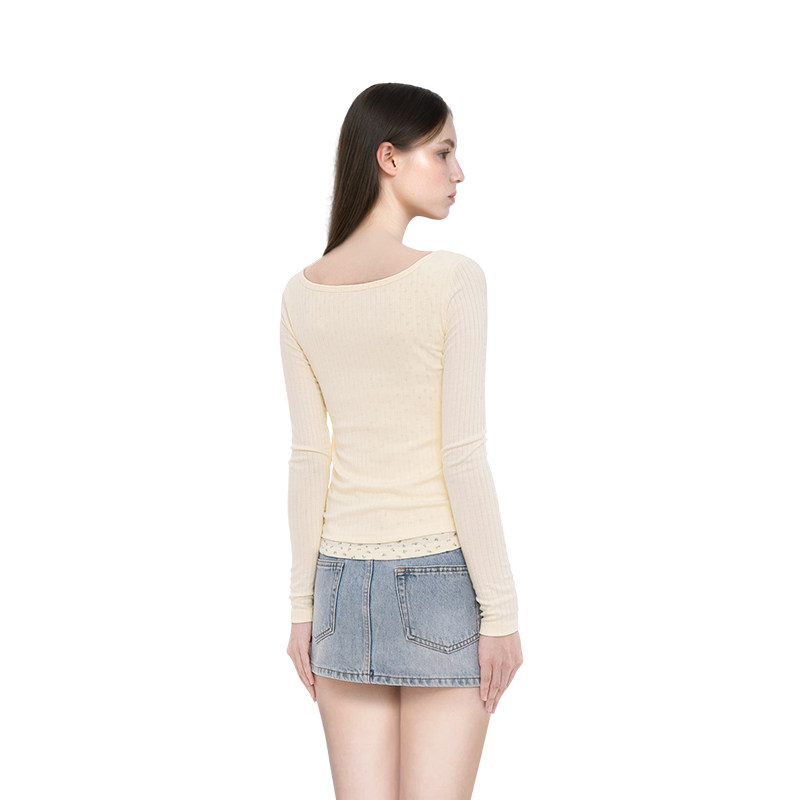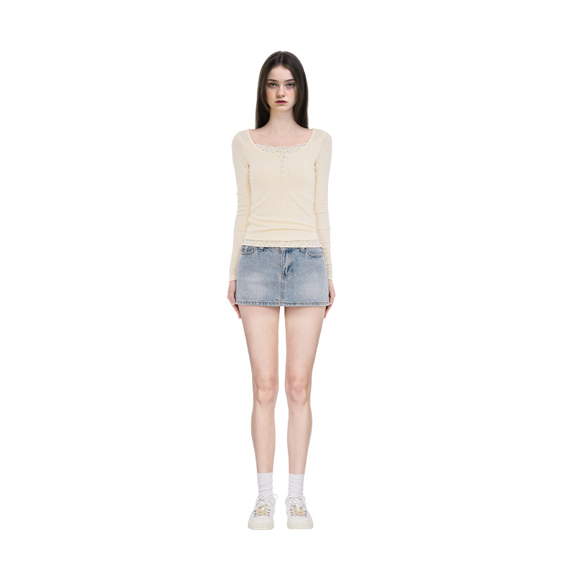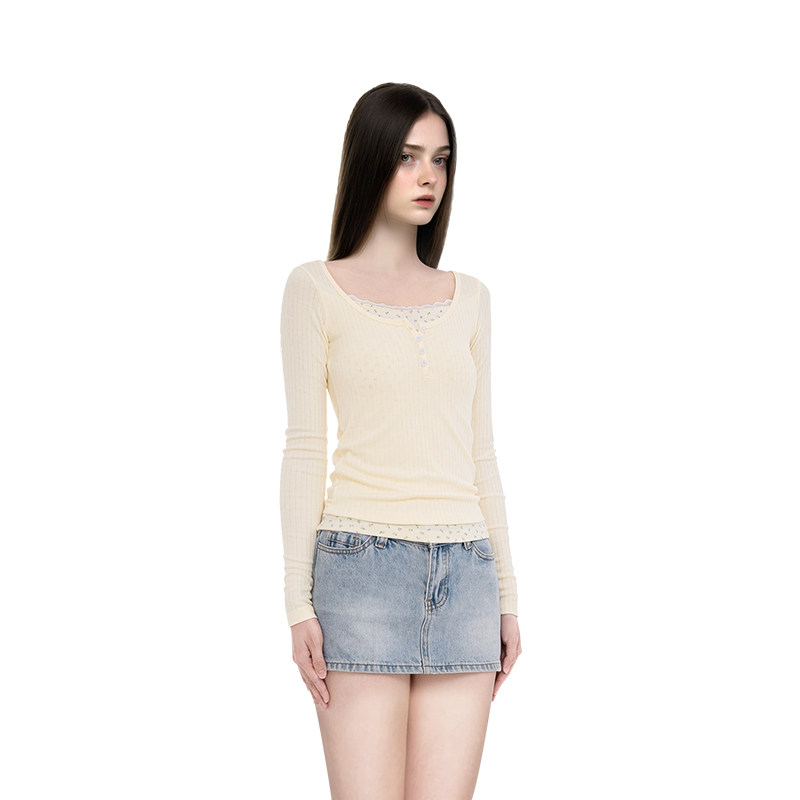 BM长袖上衣女2026新款秋冬假两件拼接内搭蕾丝边今年流行的打底衫