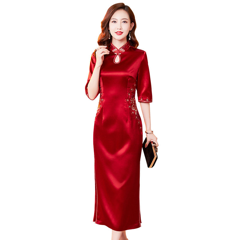 香妮芬高端醋酸妈妈婚宴礼服连衣裙2026春季新喜婆婆精致气质旗袍