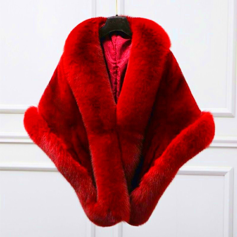 秋冬新娘濑兔毛毛披肩婚纱披风结婚礼服旗袍皮草斗篷外套加厚披肩