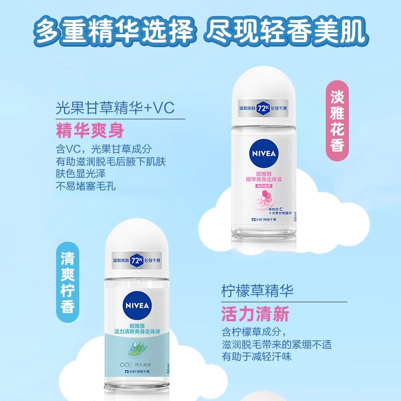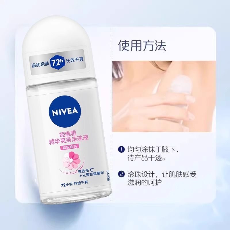 妮维雅走珠液女止汗露男腋下持久香体香水滚珠喷雾干爽走汗珠淡香