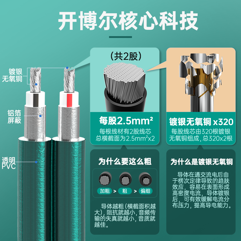 开博尔音响喇叭线无氧铜全镀银320芯音箱连接线发烧级hifi音响线