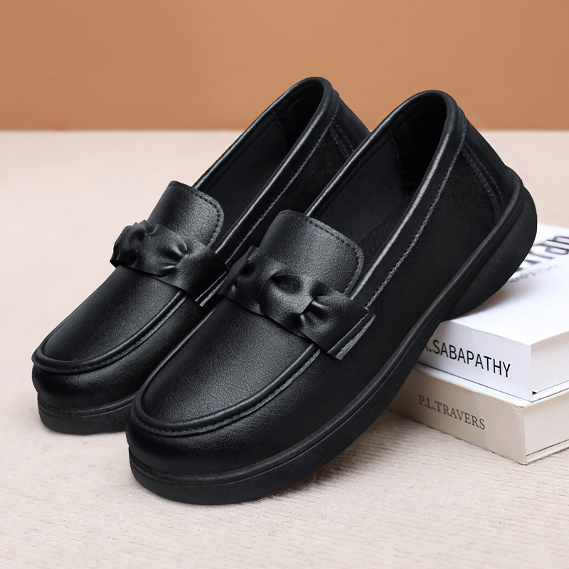 肯德基防滑工作鞋女皮鞋久站不累脚厨房防水防油黑色软底妈妈鞋
