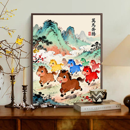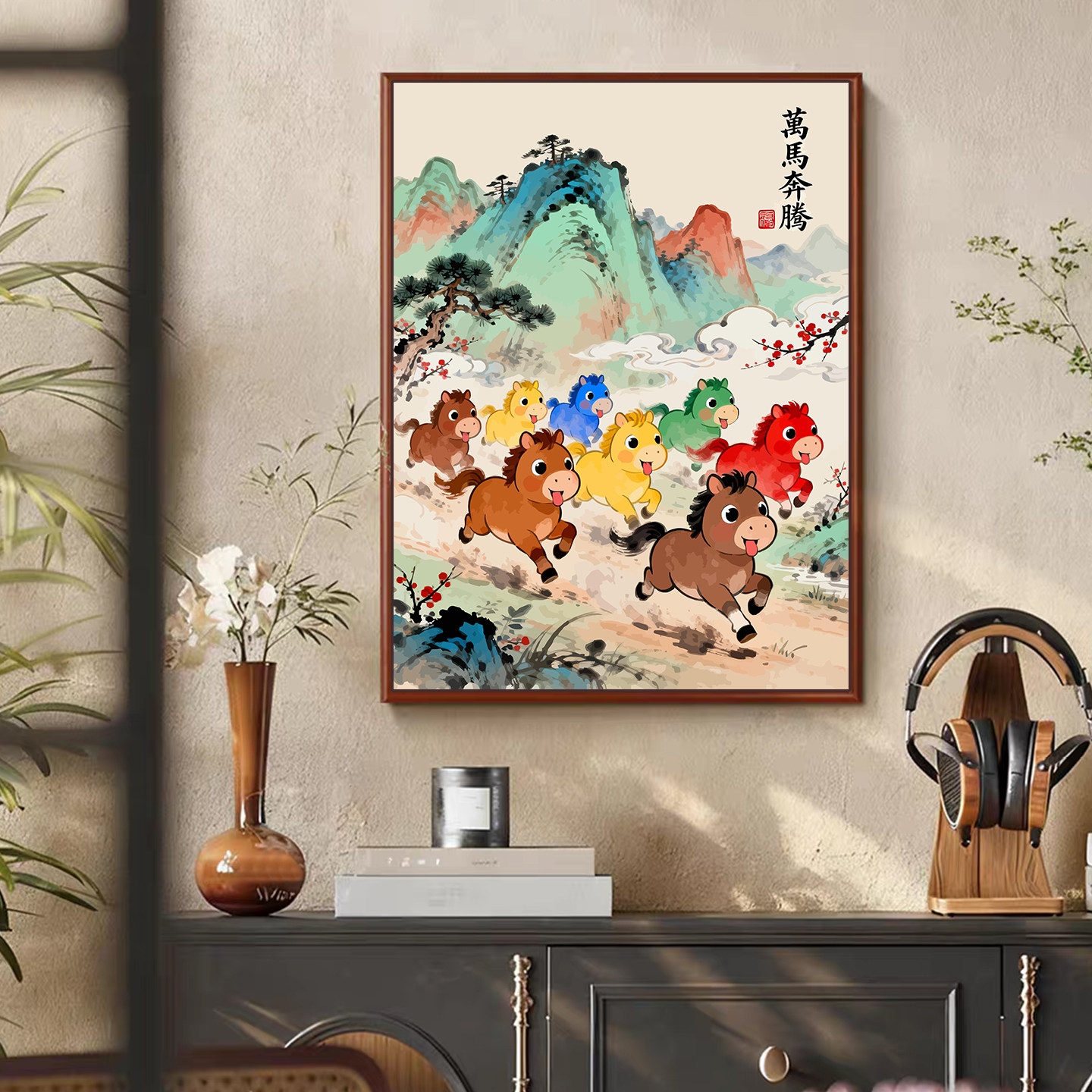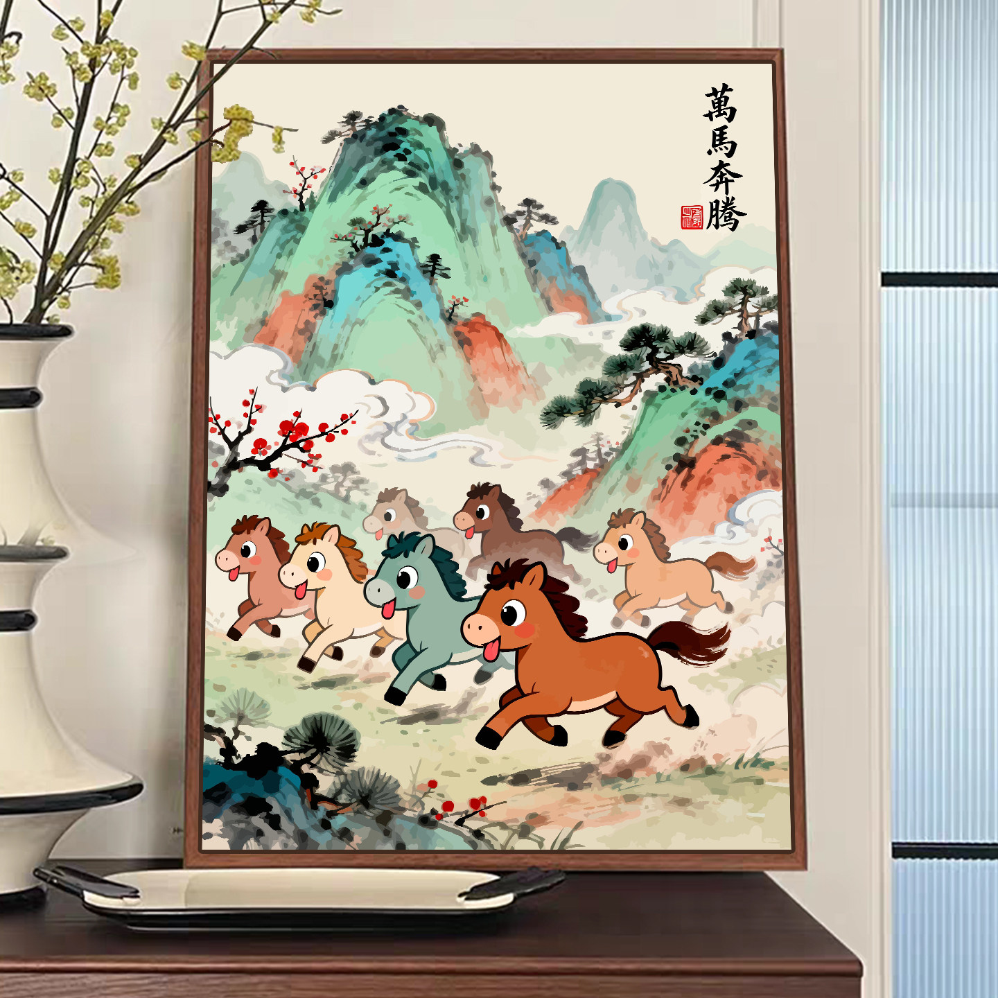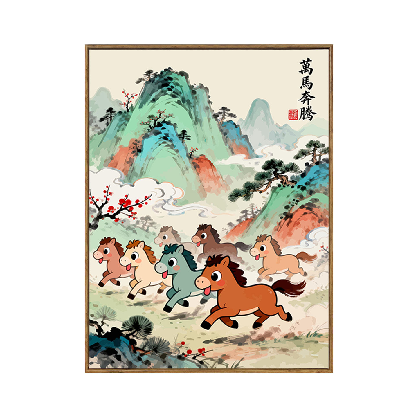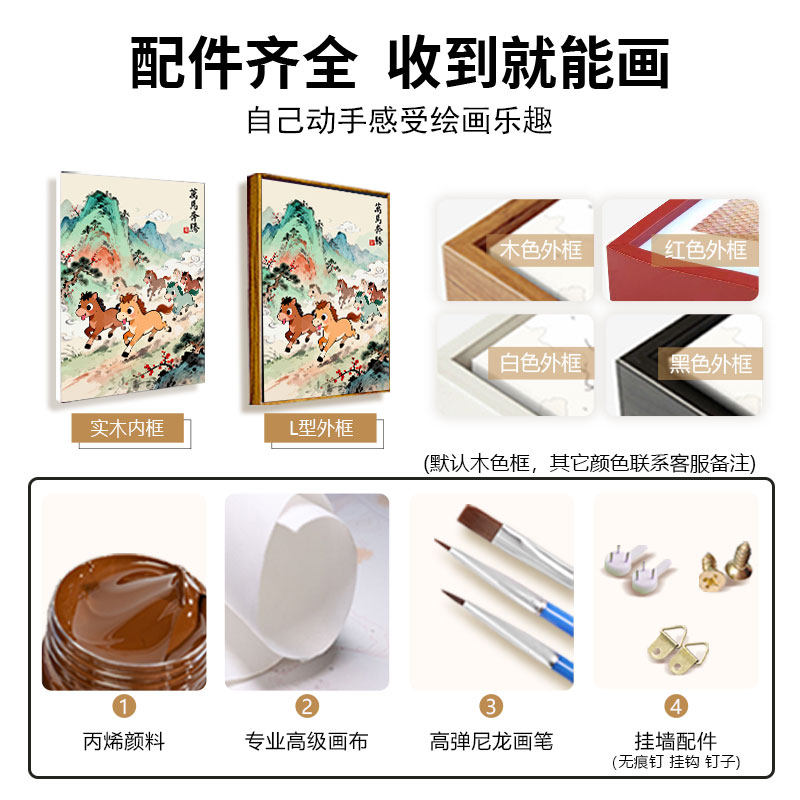 中国风万马奔腾数字油画diy填充涂色手工绘高级感卡通丙烯装饰画