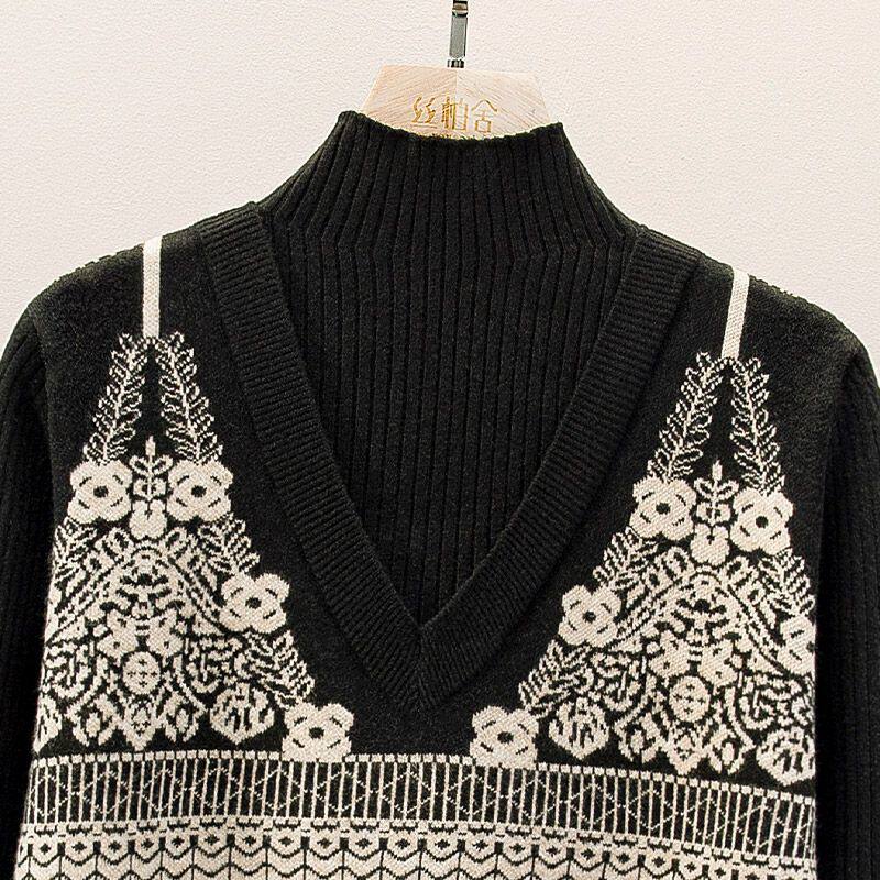 假两件提花毛衣女秋冬半高领