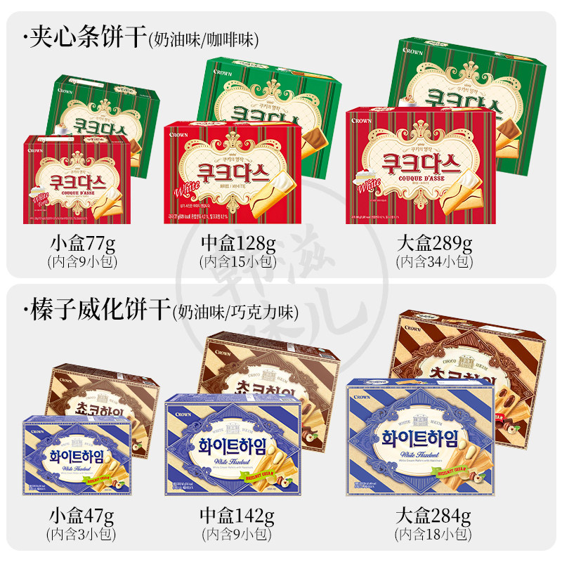韩国进口CROWN克丽安夹心饼干巧克力榛子威化办公室分享休闲零食