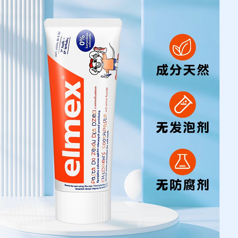 elmex艾美适0-6-12岁儿童牙膏含氟防蛀进口宝宝婴儿不辣嘴2185